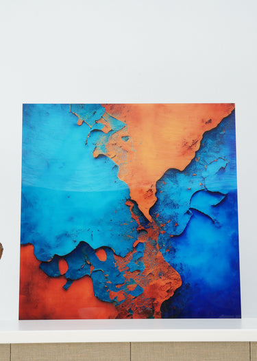 The Elysian Ember Glass Artwork captures the rare tension between stillness and intensity - a breathtaking interplay of fiery amber and oceanic blue tones that seem to move beneath the surface. Printed on premium tempered glass, every pigment radiates with clarity and depth, creating a luminous effect that shifts beautifully with the light of day.