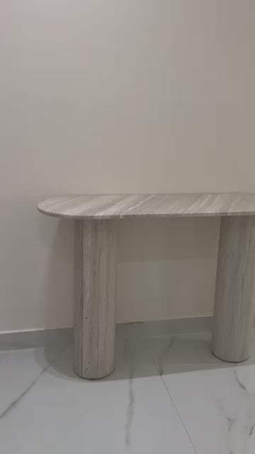 The Apra White Wood Marble Console Table combines clean design with the timeless beauty of natural stone. Crafted from white wood marble, its smooth surface and subtle veining bring a refined elegance to entryways, living rooms, or hallways. At L120 × W40 × H80 cm, it offers generous surface space while maintaining a slim, versatile profile that complements both modern and classic interiors.