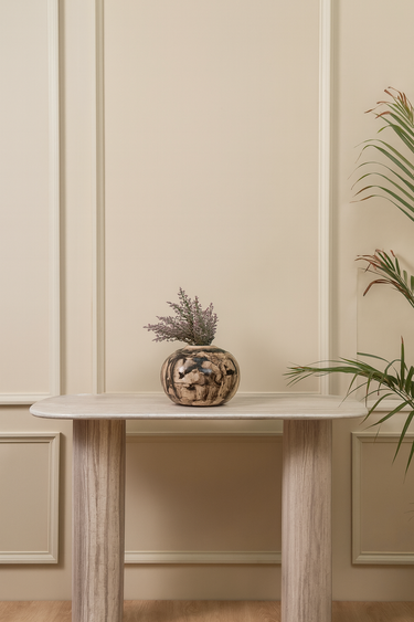 White wood marble is known for its graceful tone variations and delicate patterns. Because this console is made from authentic marble, minor differences in veining, texture, and shade are expected. These natural variations are part of its charm, ensuring that every Apra console is entirely unique.