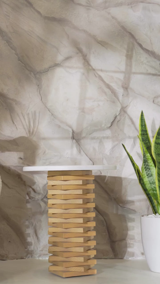 Bosco Volakas Marble Top Beech Wooden Base Side Table