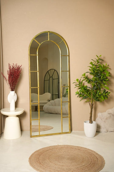 The Arch Golden Frame Mirror - Antique Finish is a statement piece that blends elegance and luxury. Designed with a stunning arched silhouette and finished in a radiant gold frame, this mirror adds a touch of opulence to any space. At 180 cm × 90 cm, it offers a full-length reflection that is both practical and stylish, making it perfect for bedrooms, living rooms, or entryways.
