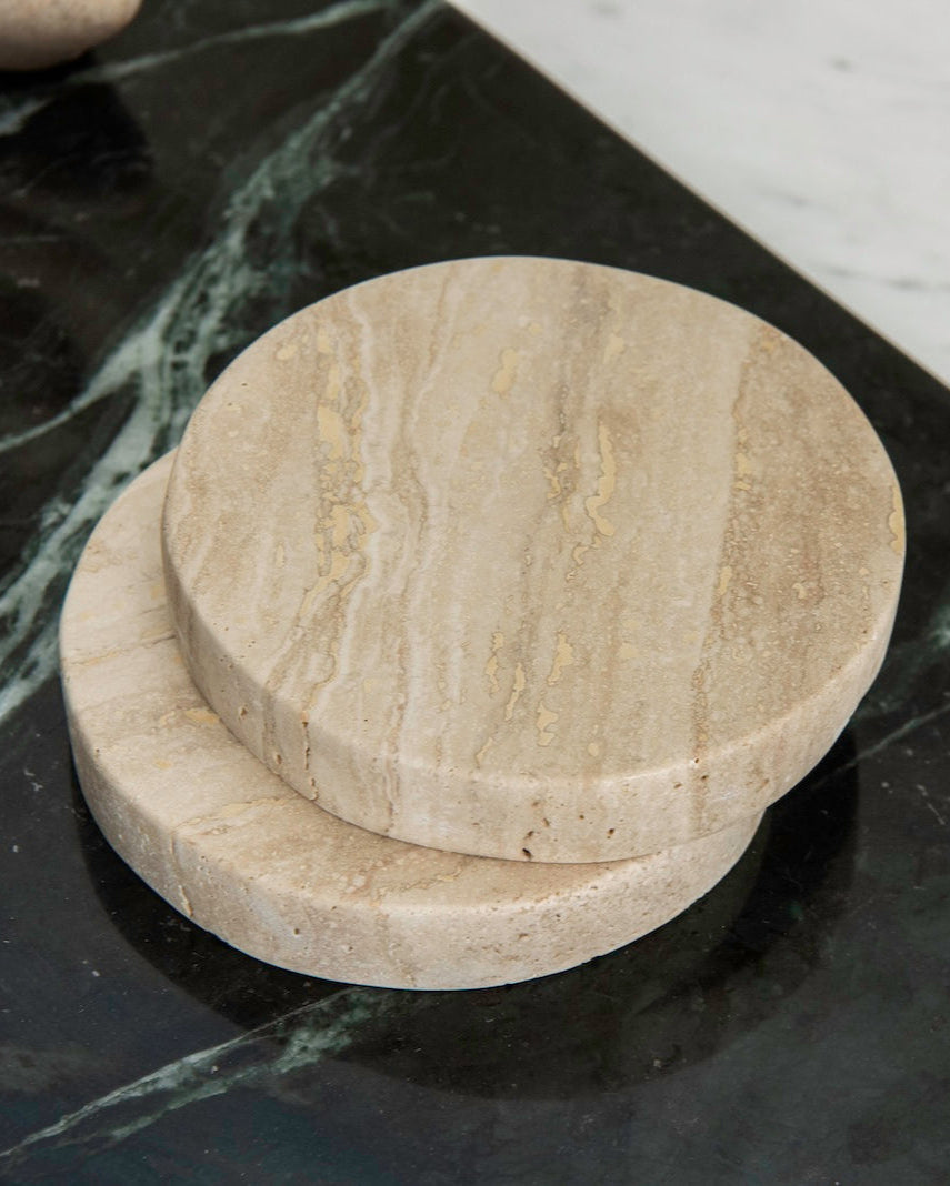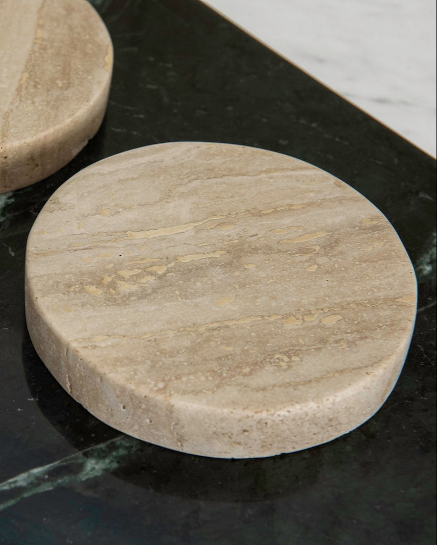 Travertine Marble Coasters: Natural Beauty Meets Practical Elegance. These coasters, crafted from premium Travertine marble, offer a unique blend of rustic charm and refined style. The distinctive texture and earthy tones of Travertine enhance any decor while providing superior protection for your surfaces. Each coaster features natural variations in color and pattern, making each piece a one-of-a-kind addition to your table setting. Perfect for adding a touch of sophistication and durability to your home, these coasters are as functional as they are beautiful.