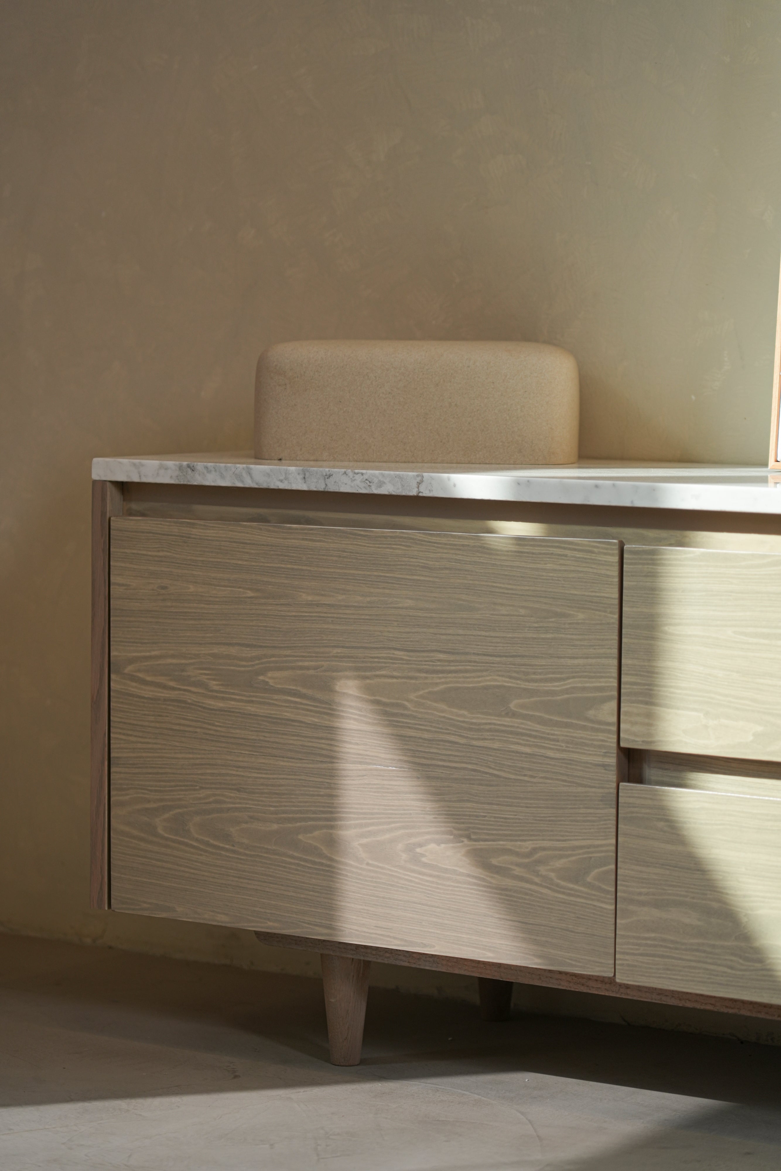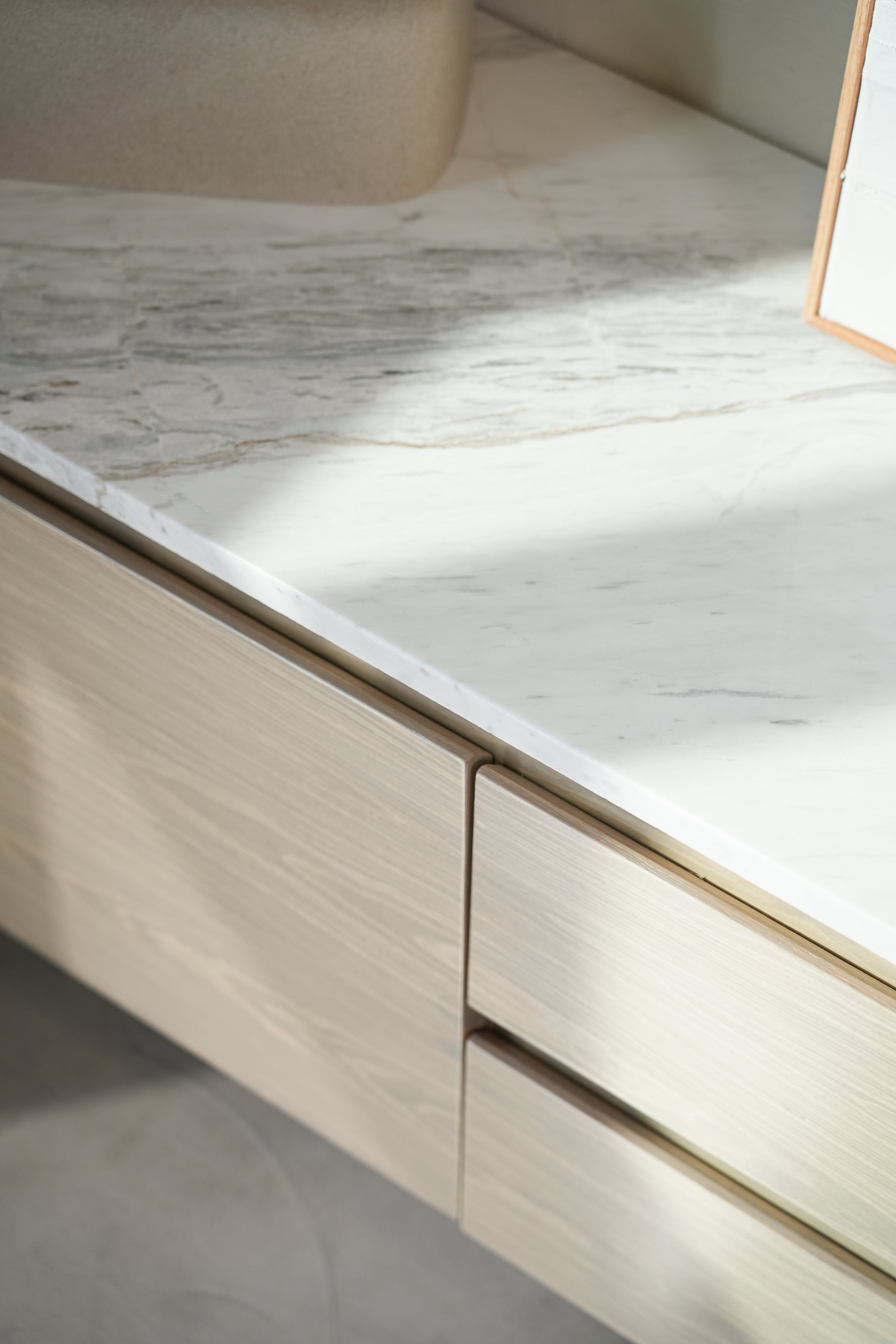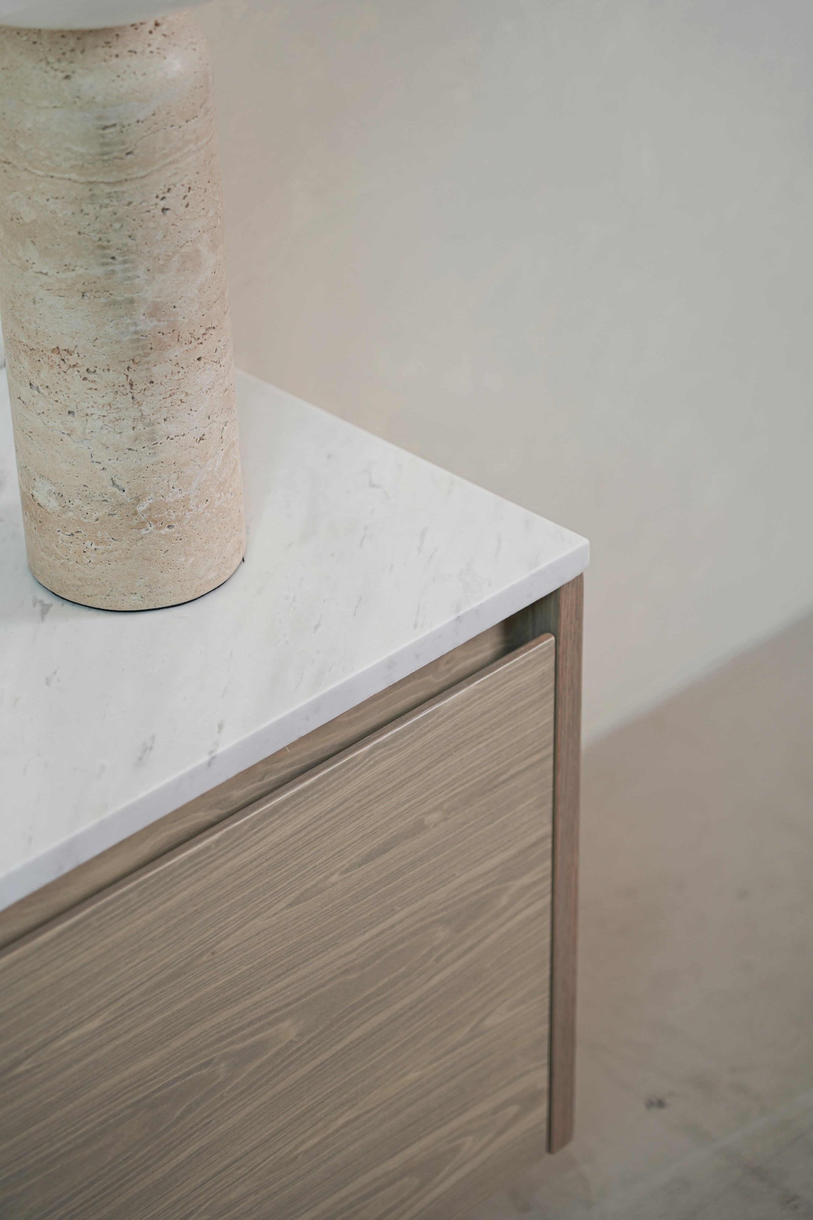 • Material: Volakas marble top with Oak Vineer high-quality wooden structure