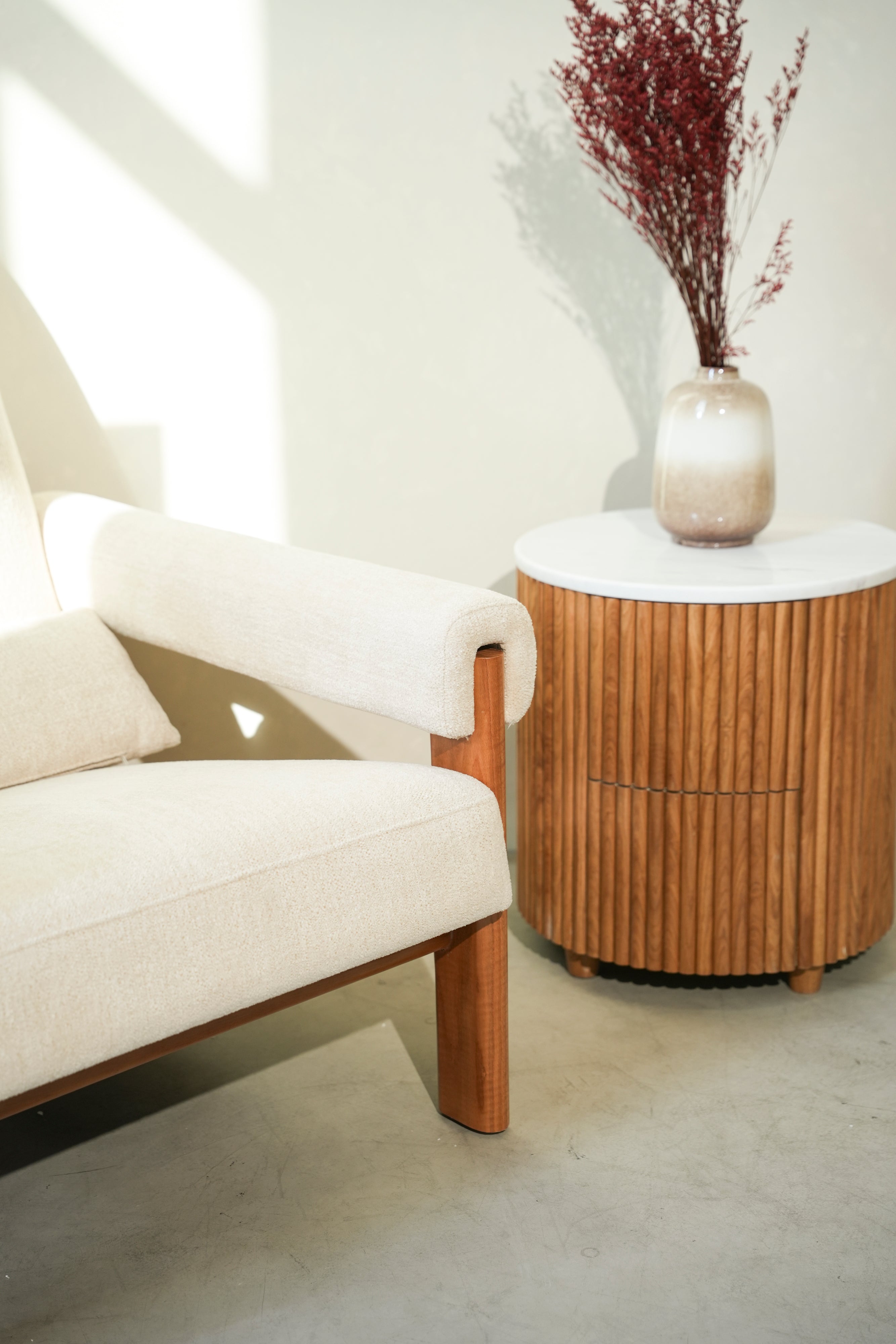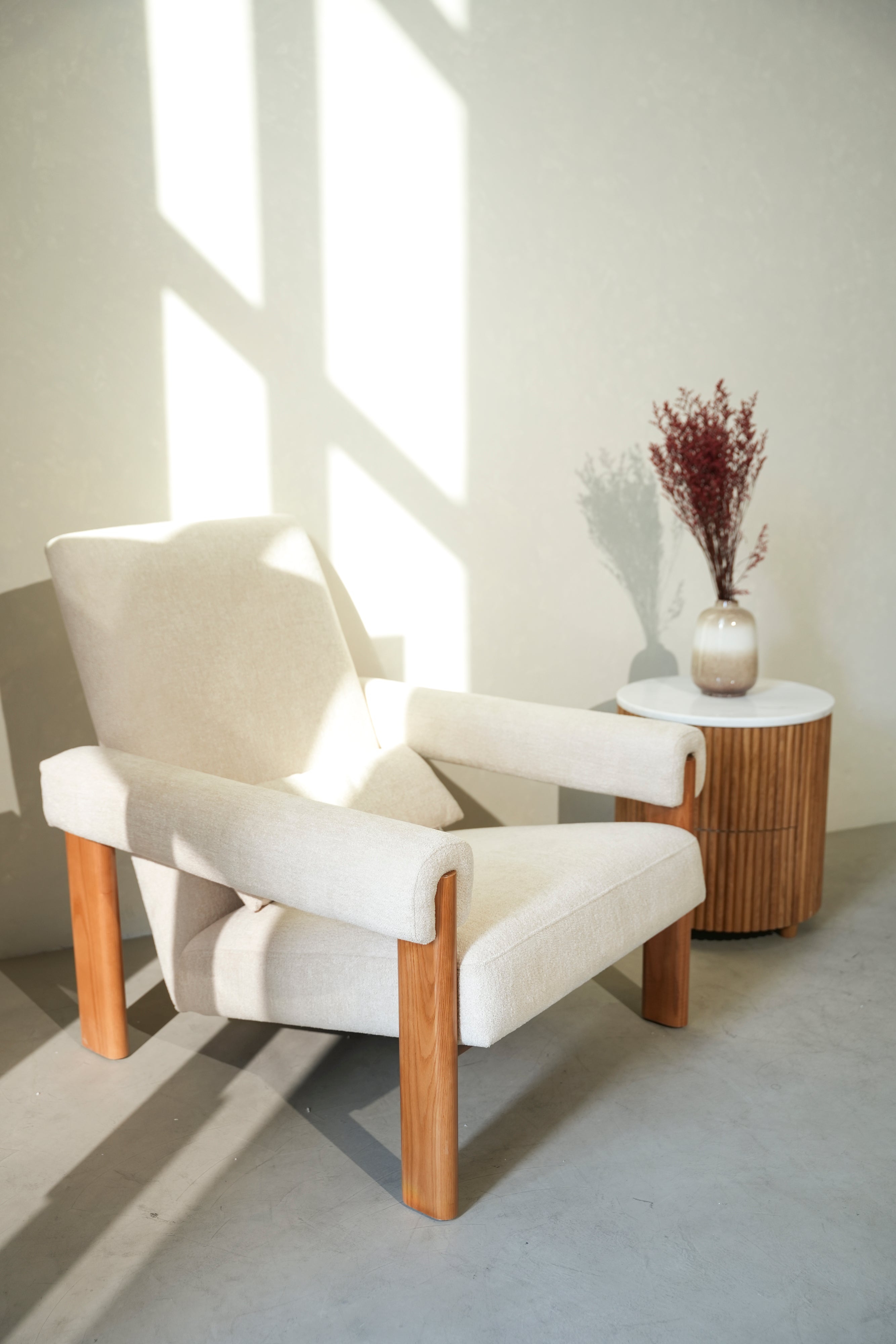 The Arial Single Couch Seater is designed to bring both comfort and style into your living space. With its plush, upholstered cushions and sleek wooden frame, it creates the perfect balance of relaxation and sophistication. Ideal for cozy corners, reading nooks, or as a statement piece in your living room, Aria redefines modern comfort.
