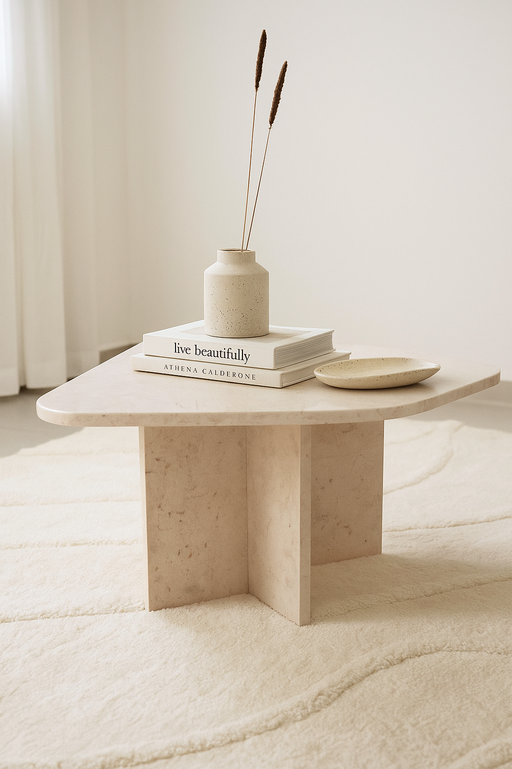 The Lovia Coffee Table is a perfect balance of minimalism and sophistication. Crafted from premium beige marble, it features soft natural veining that enhances its timeless beauty. Its compact yet striking form makes it ideal for both modern and classic interiors, serving as an elegant centerpiece for intimate spaces.