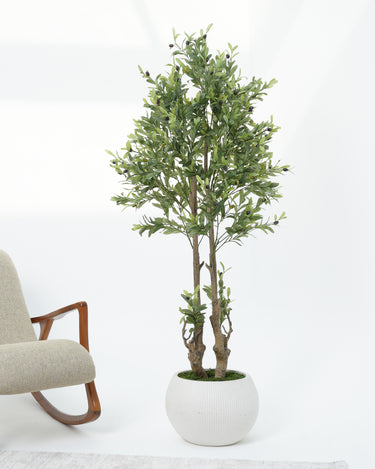 Bring timeless Mediterranean charm indoors with the Olive Tree with Natural Trunk. Standing tall with lush green foliage and a realistic bark finish, this handcrafted artificial tree captures the serene beauty of nature—without the upkeep.
