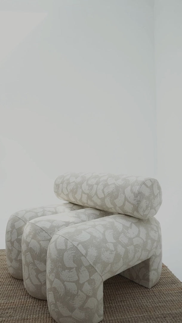 Upholstered in IDT Comfort Linen Texture 17, the Uvina Chair offers a plush, premium feel with a beautifully textured finish. Its cylindrical backrest and rounded geometric base create a signature shape that is both visually striking and exceptionally comfortable.