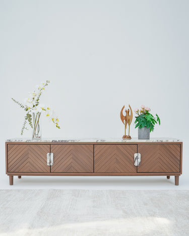 Zino Calacatta Viola Marble & Teakwood Wood TV Unit